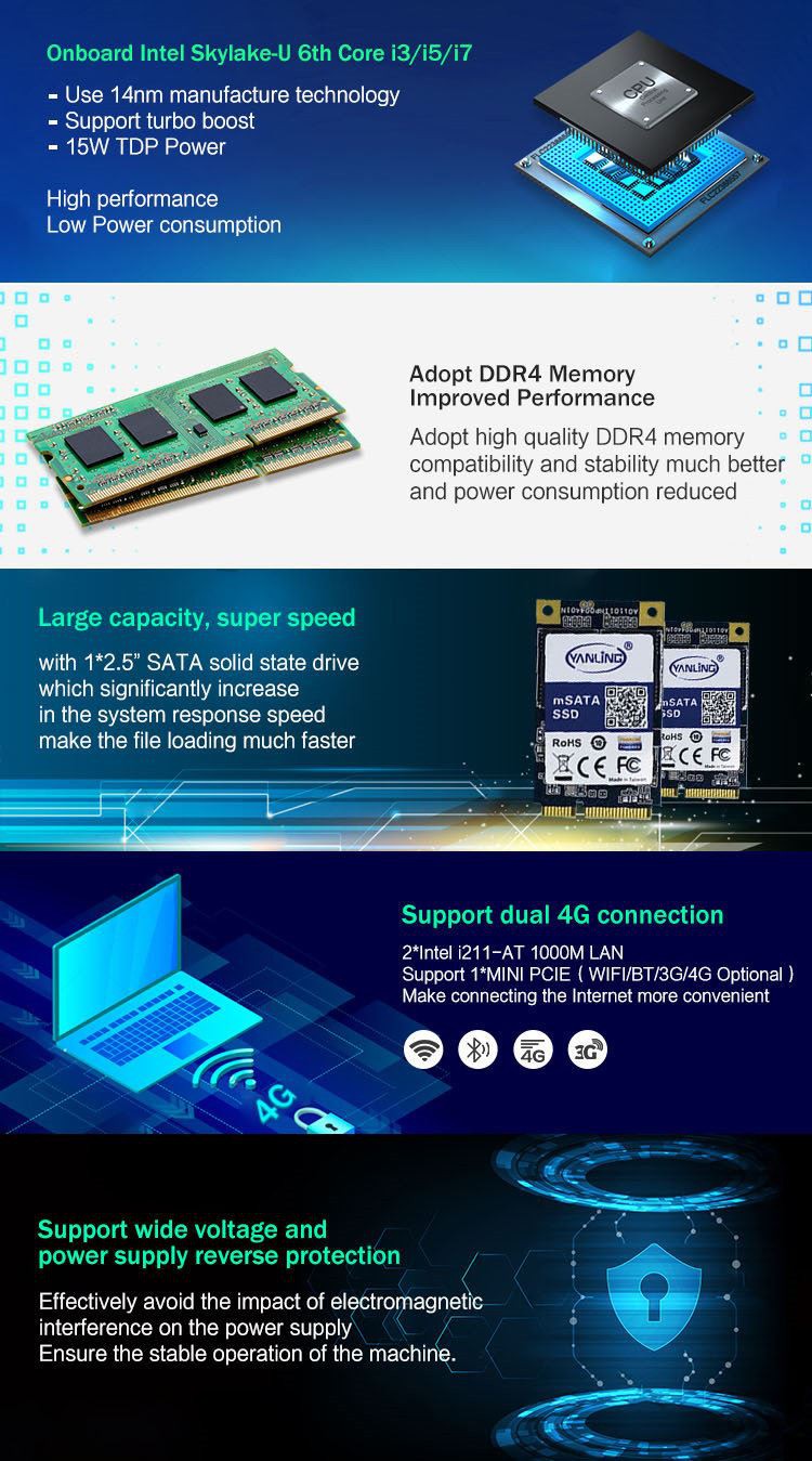 Zabudovaný počítač PC bez ventilátora Core I5 7200U s ventilátorom